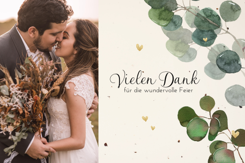 Hier findest du eine Übersicht über unsere Dankeskarten im Querformat – sie bieten viel Platz für die schönsten Fotos von eurer Hochzeit.