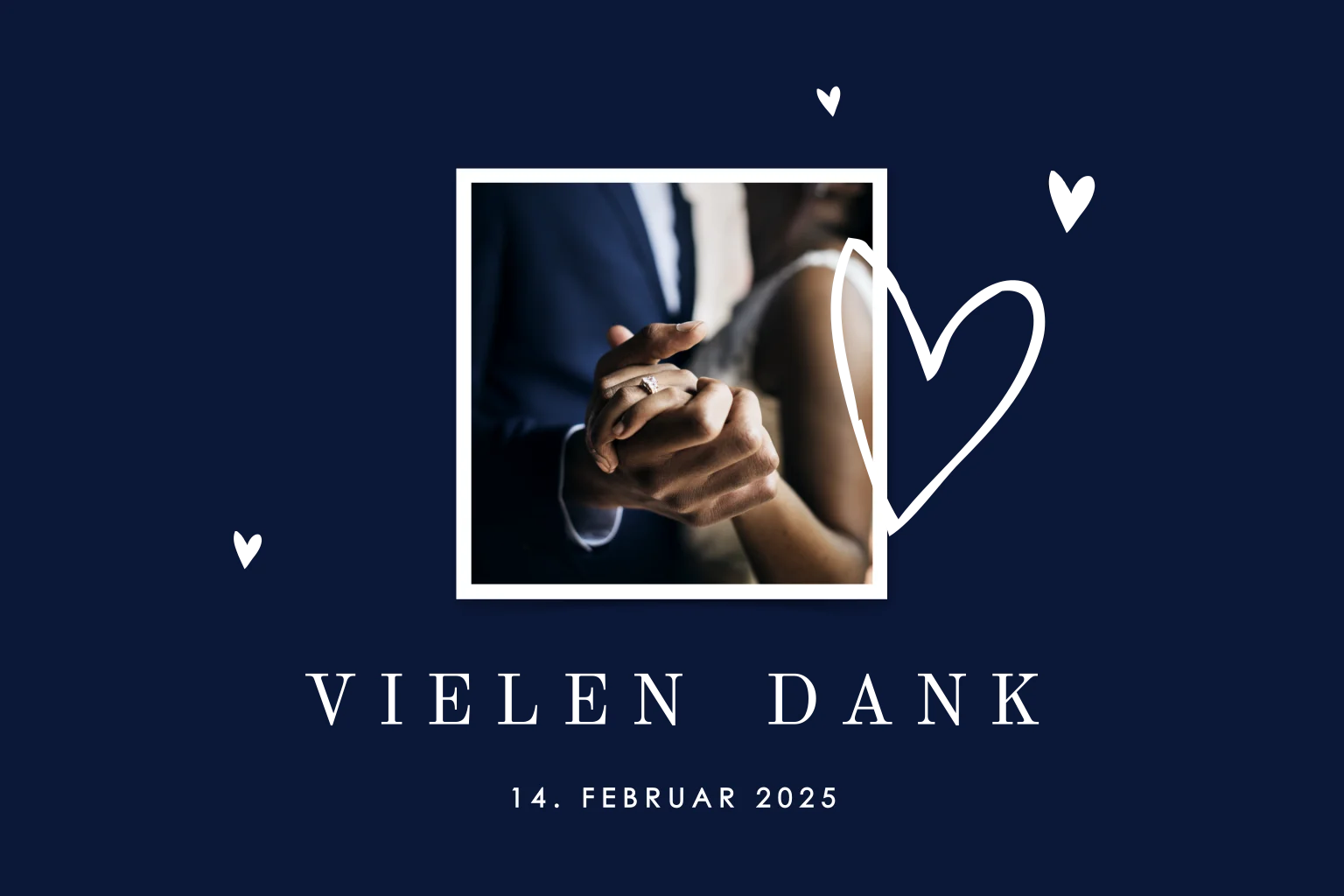 Schöne blau Dankeskarte mit Roségold Veredelung und Foto