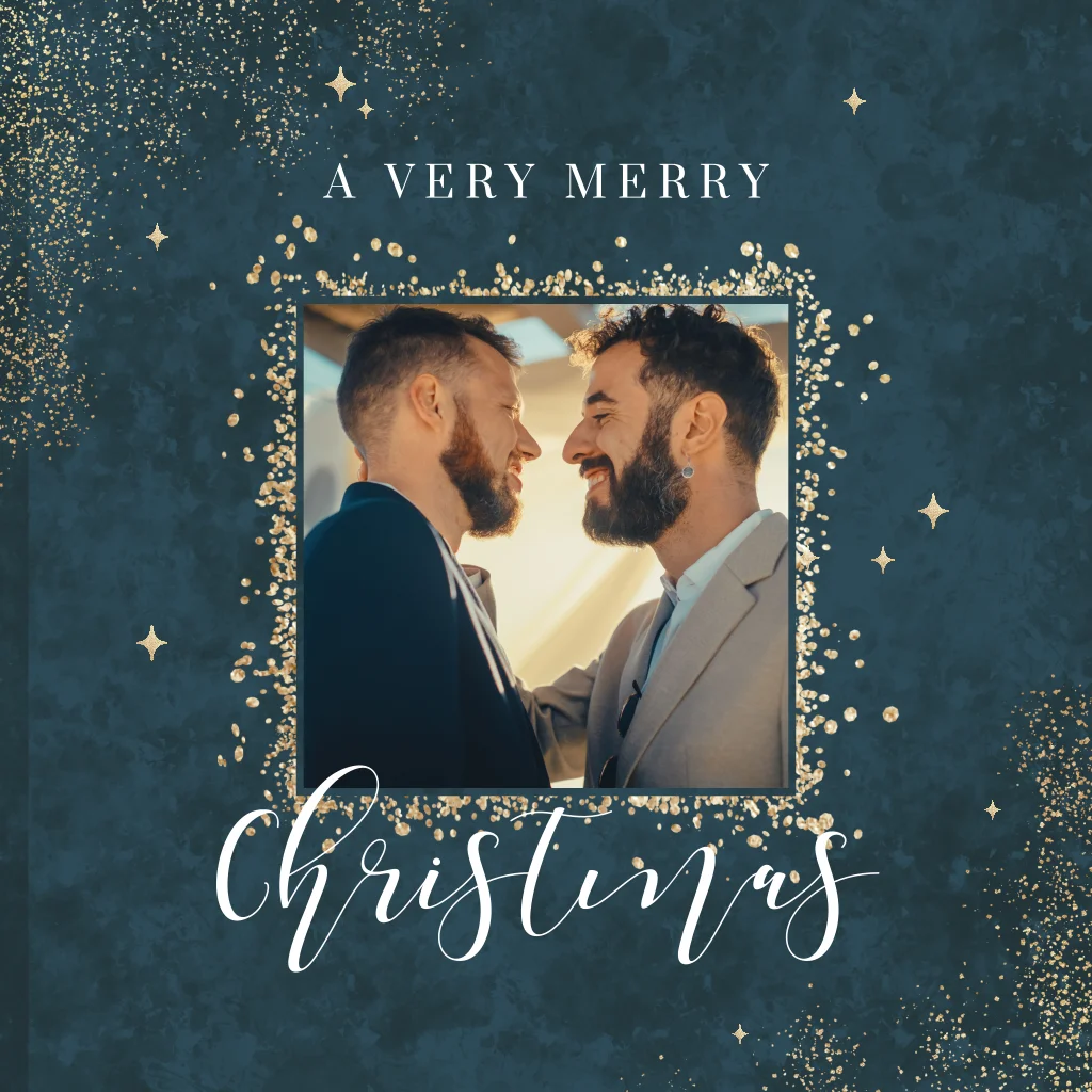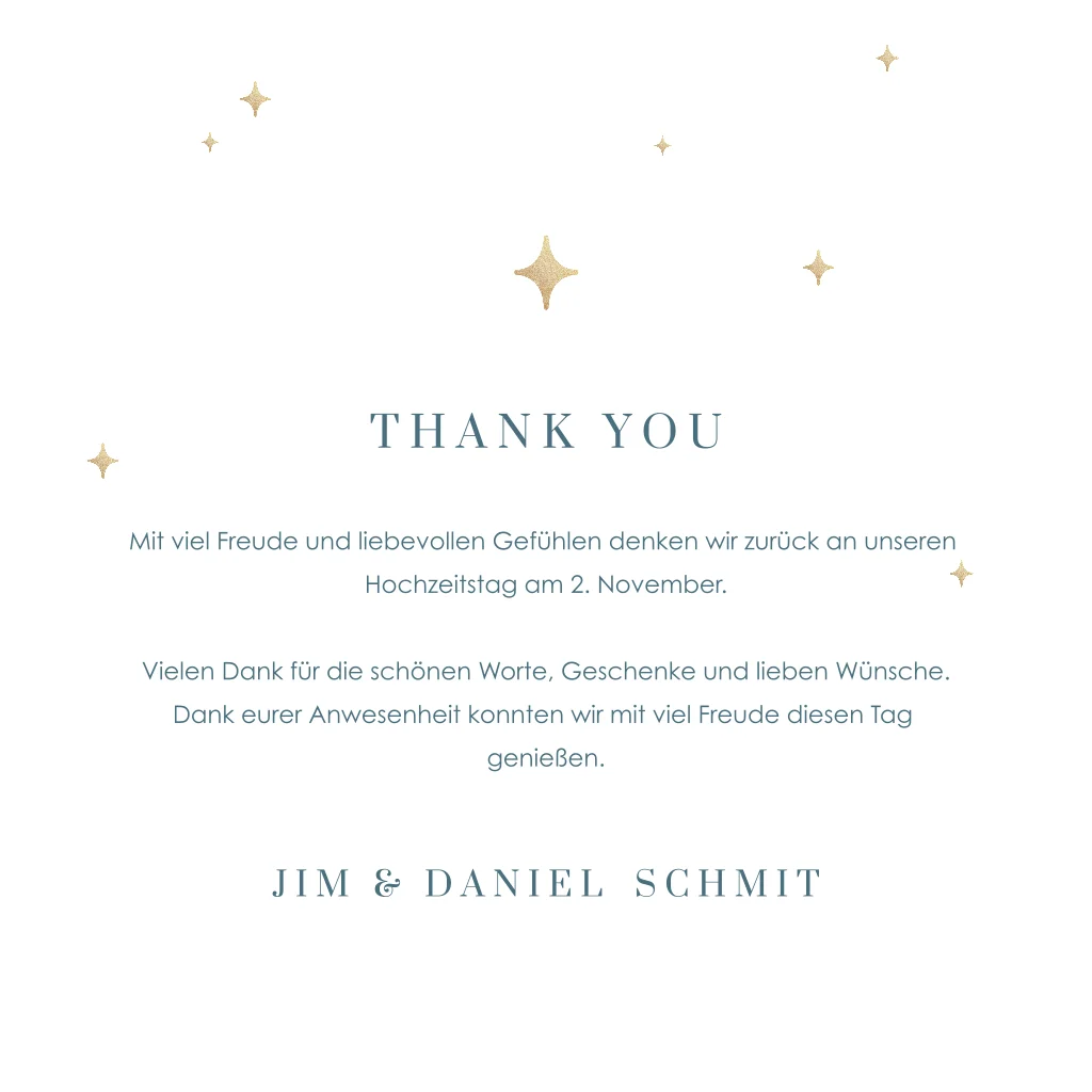 Weihnachtliche Dankeskarte Hochzeit dunkelblau mit goldenen Sprenkeln