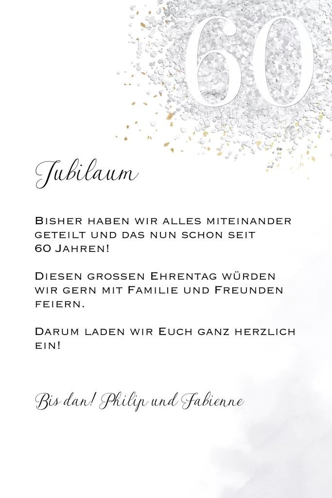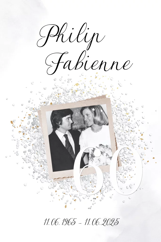 Diamanthochzeitseinladung mit elegantem Design und persönlichem Foto.