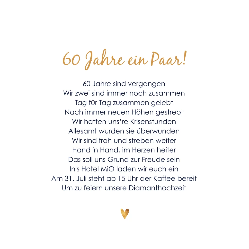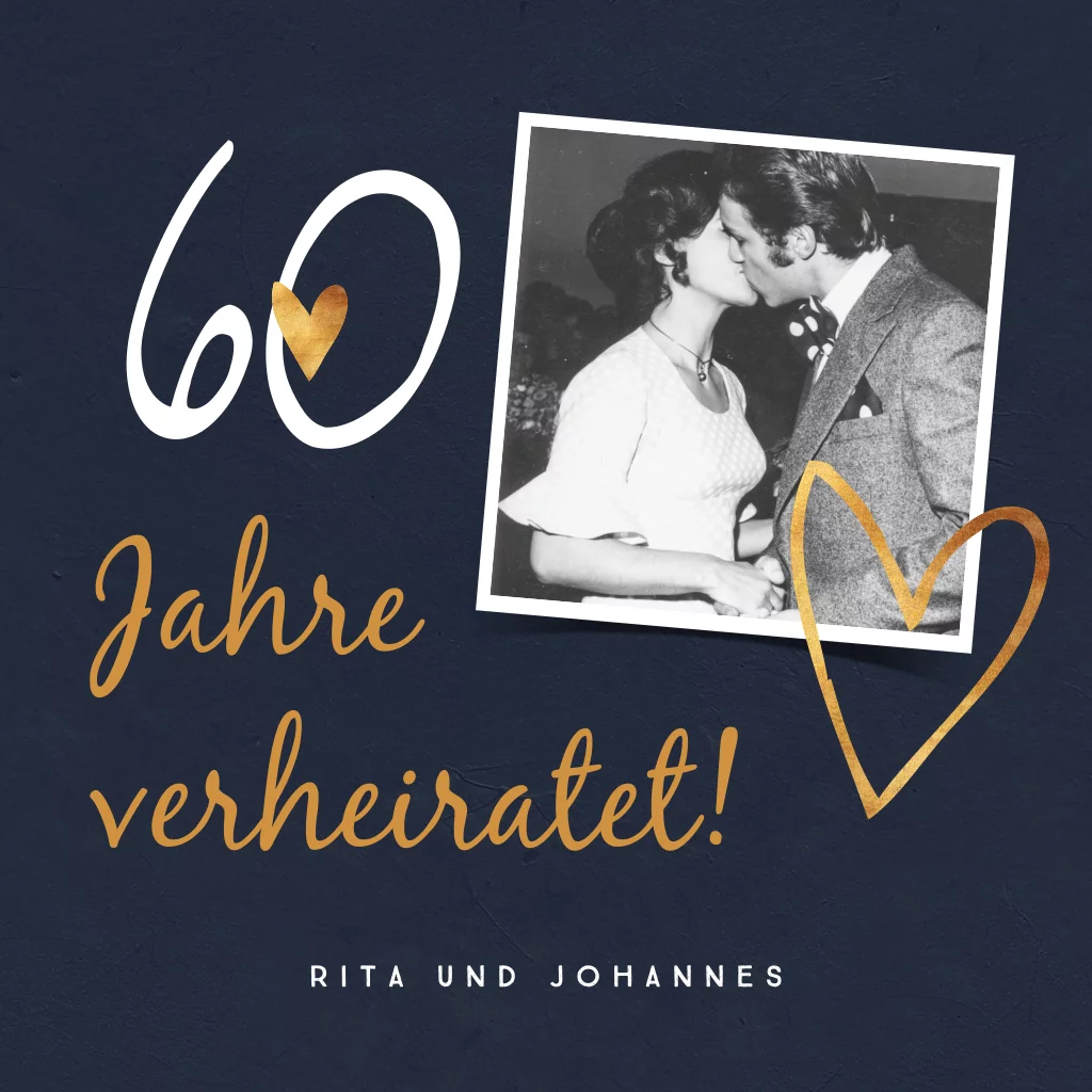 Einladung zur Diamanthochzeit mit dunkelblauem Hintergrund und Foto