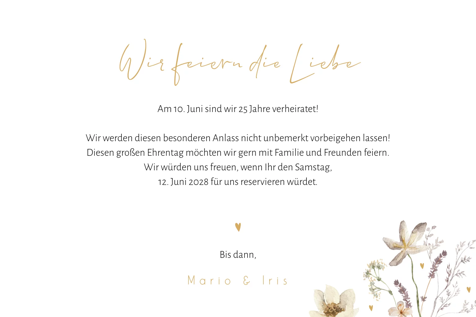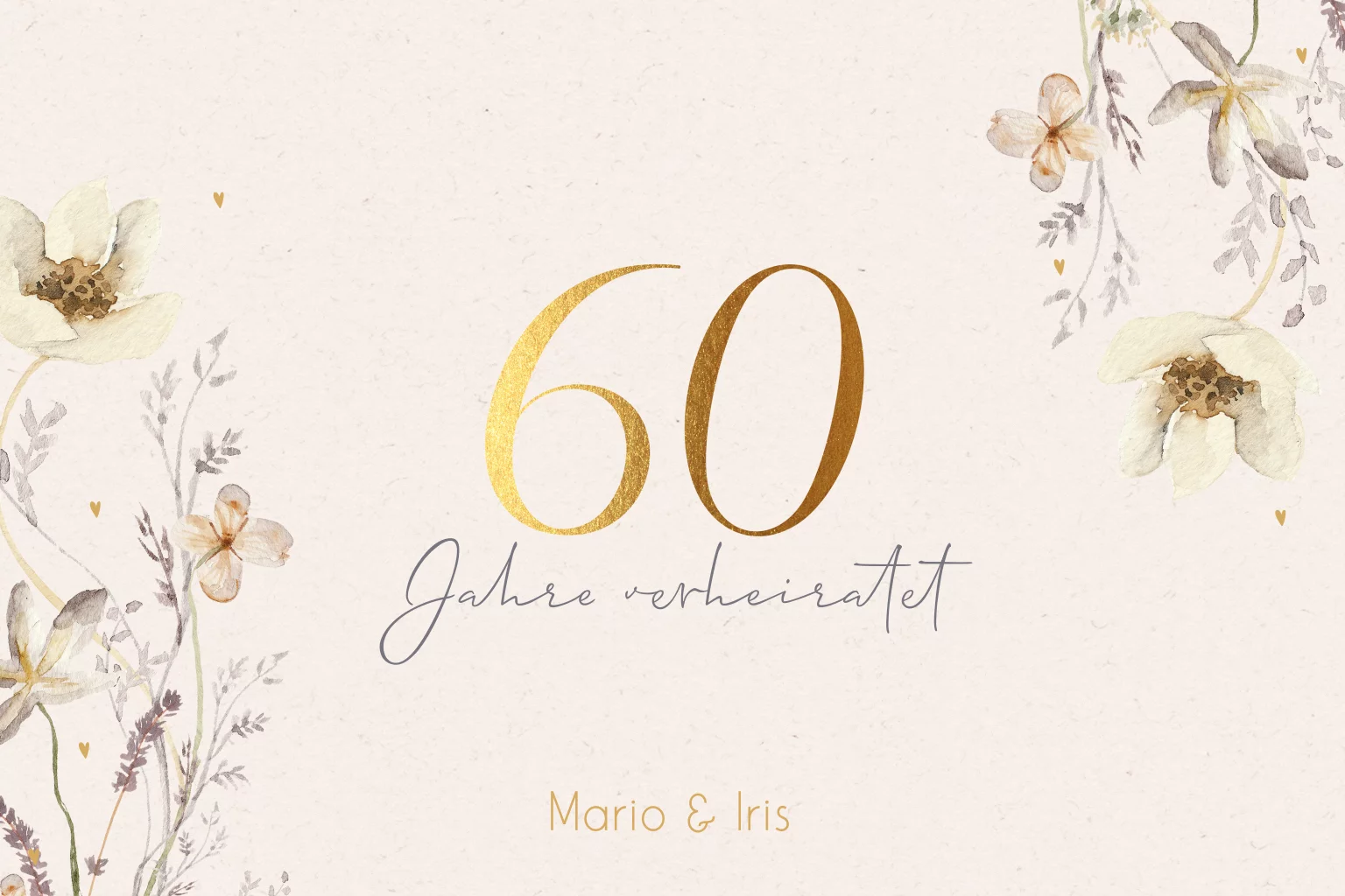 Florale Einladung zur Diamantenen Hochzeit mit Herzen und Feldblumen