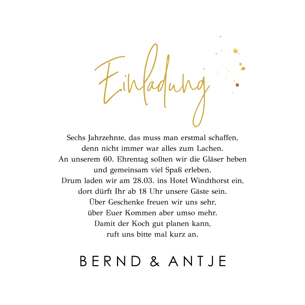 Moderne Einladung zur diamantenen Hochzeit mit Foto in 60