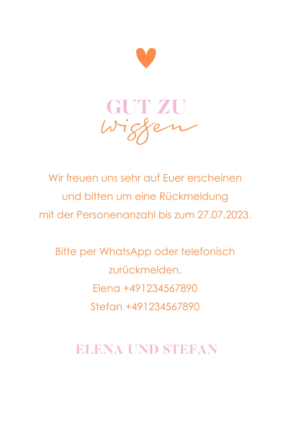 Hinweis: Ein Einlegeblatt ist das perfekte Extra für deine Hochzeitseinladungen. Auf den dünnen Einlegern hast du die Möglichkeit, extra Infos für die Gäste hinzuzufügen.