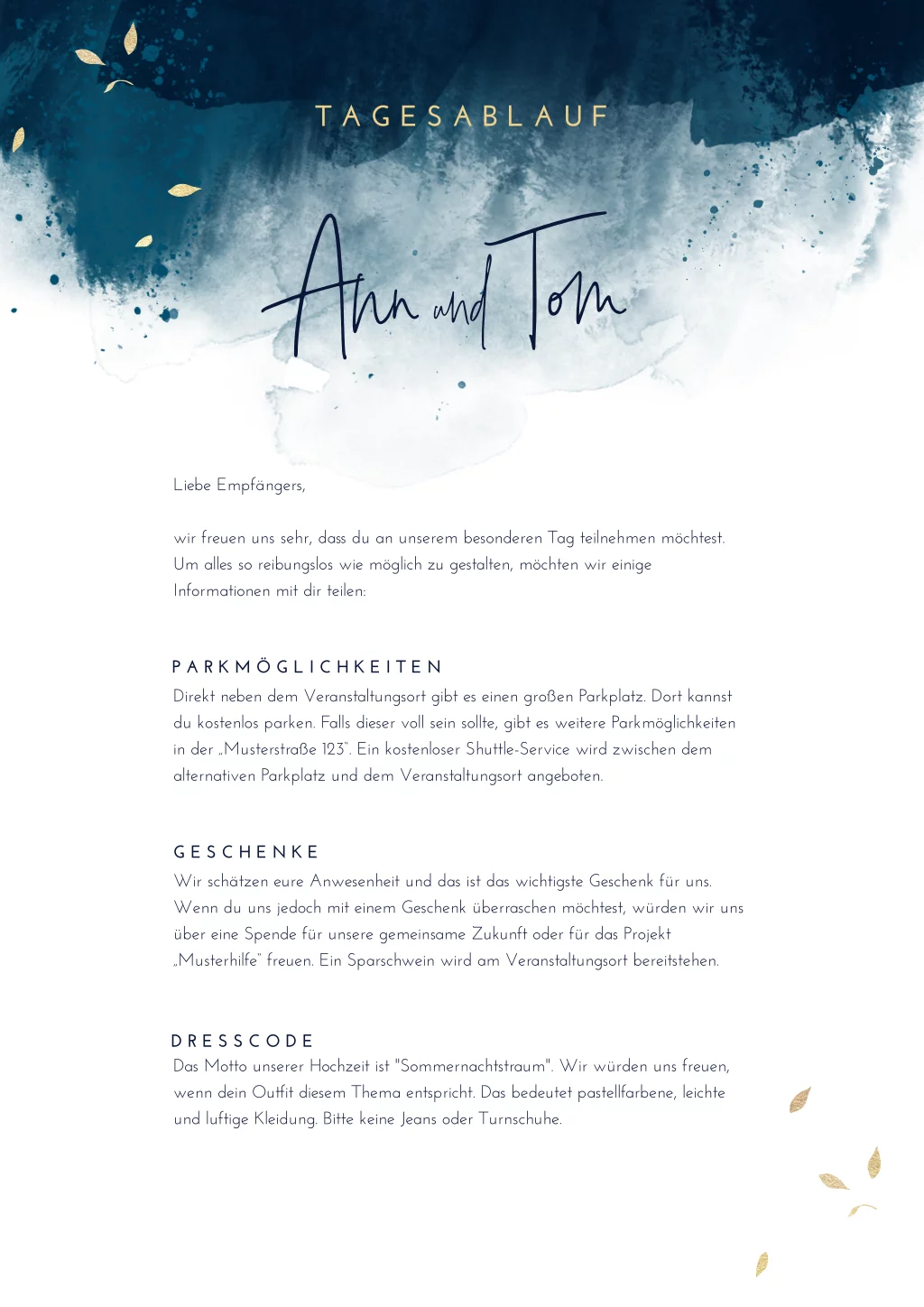 Hinweis: Ein Einlegeblatt ist das perfekte Extra für deine Hochzeitseinladungen. Auf den dünnen Einlegern hast du die Möglichkeit, extra Infos für die Gäste hinzuzufügen.