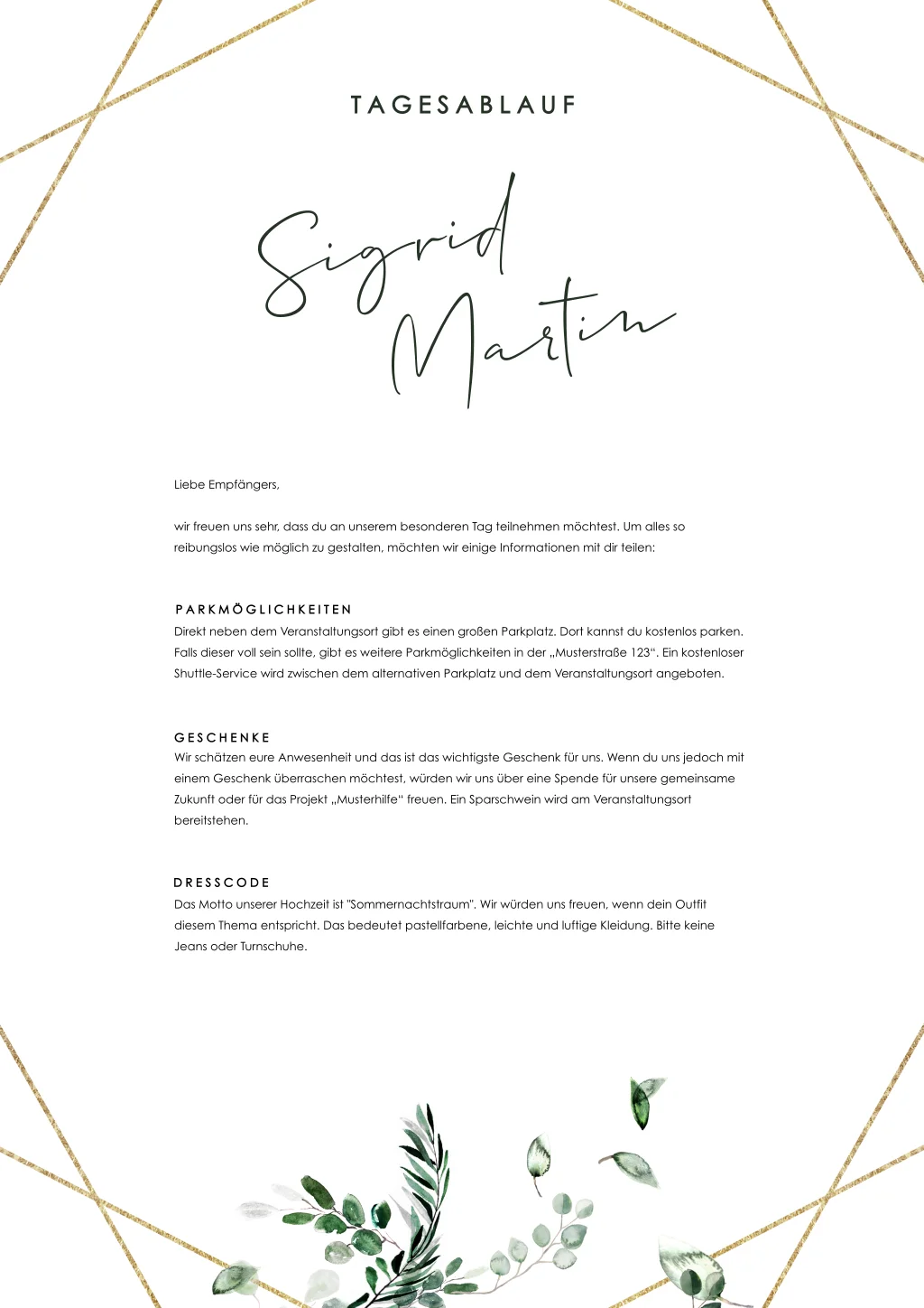 Hinweis: Ein Einlegeblatt ist das perfekte Extra für deine Hochzeitseinladungen. Auf den dünnen Einlegern hast du die Möglichkeit, extra Infos für die Gäste hinzuzufügen.