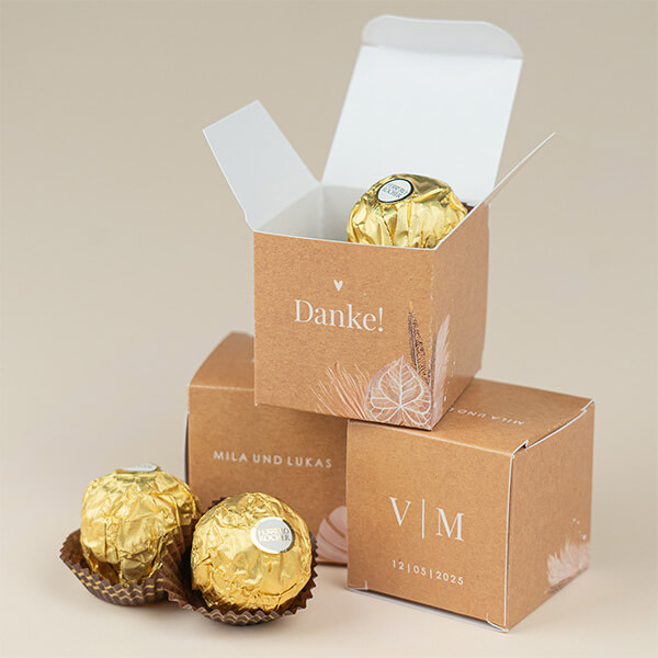 Die Box ist 5 cm hoch, breit und tief und wird ungefaltet geliefert.