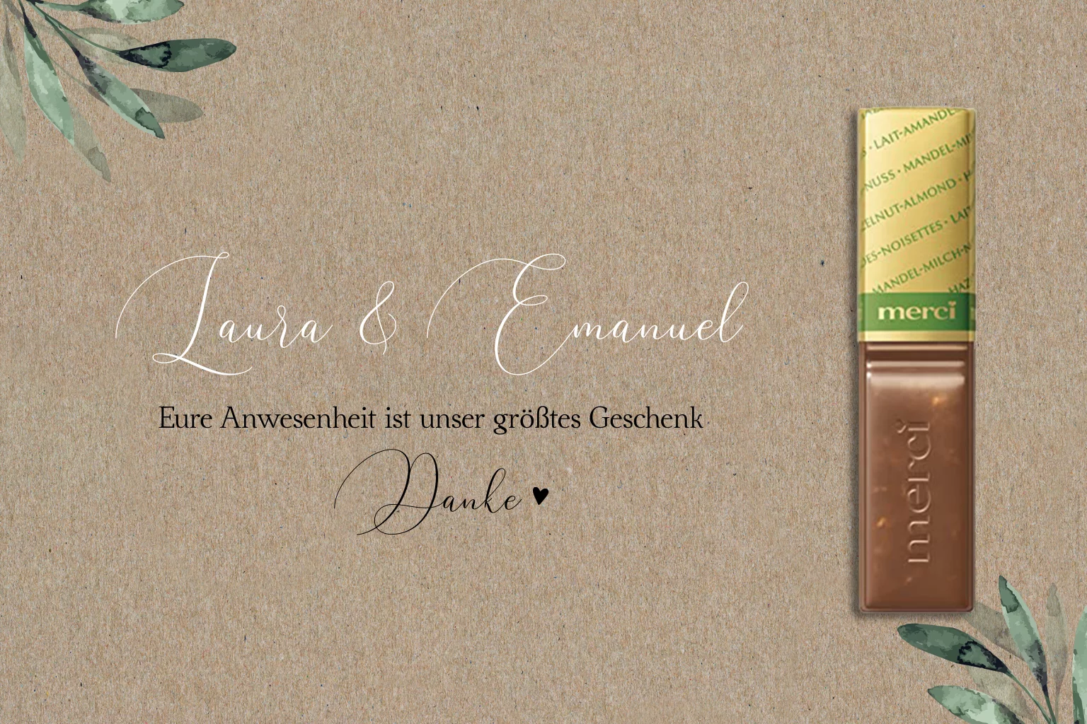 Die Größenverhältnisse der Schokoladen auf den abgebildeten Karten sind passend für 10x15 cm Karten dargestellt. Eine Merci Schokolade ist 7,5x1,5 cm und Ritter Sport 4x4 cm groß. Natürlich können die Karten auch in anderen Größen, wie 11,4x17,1 cm, bestellt werden, wodurch die Größenverhältnisse dann etwas anders ausfallen.