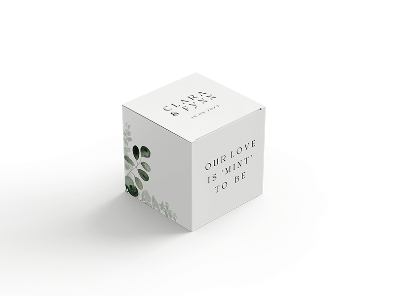 Die Box ist 5 cm hoch, breit und tief und wird ungefaltet geliefert.