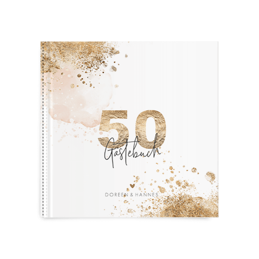 Gästebuch zur Goldenen Hochzeit in Weiss, Gold, Rosa 30x30cm