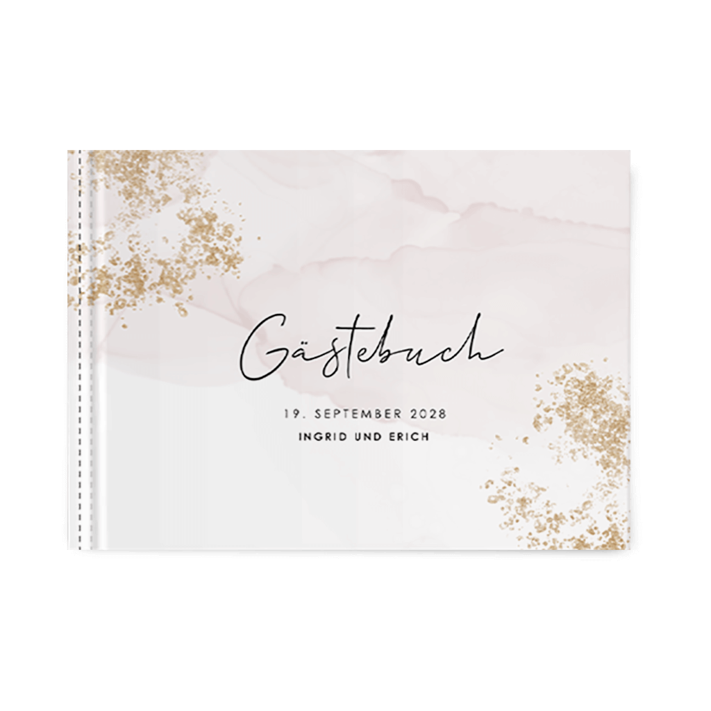 • Der Einband des Gästebuchs - die Vorder- und Rückseite - kann vollständig personalisiert werden.