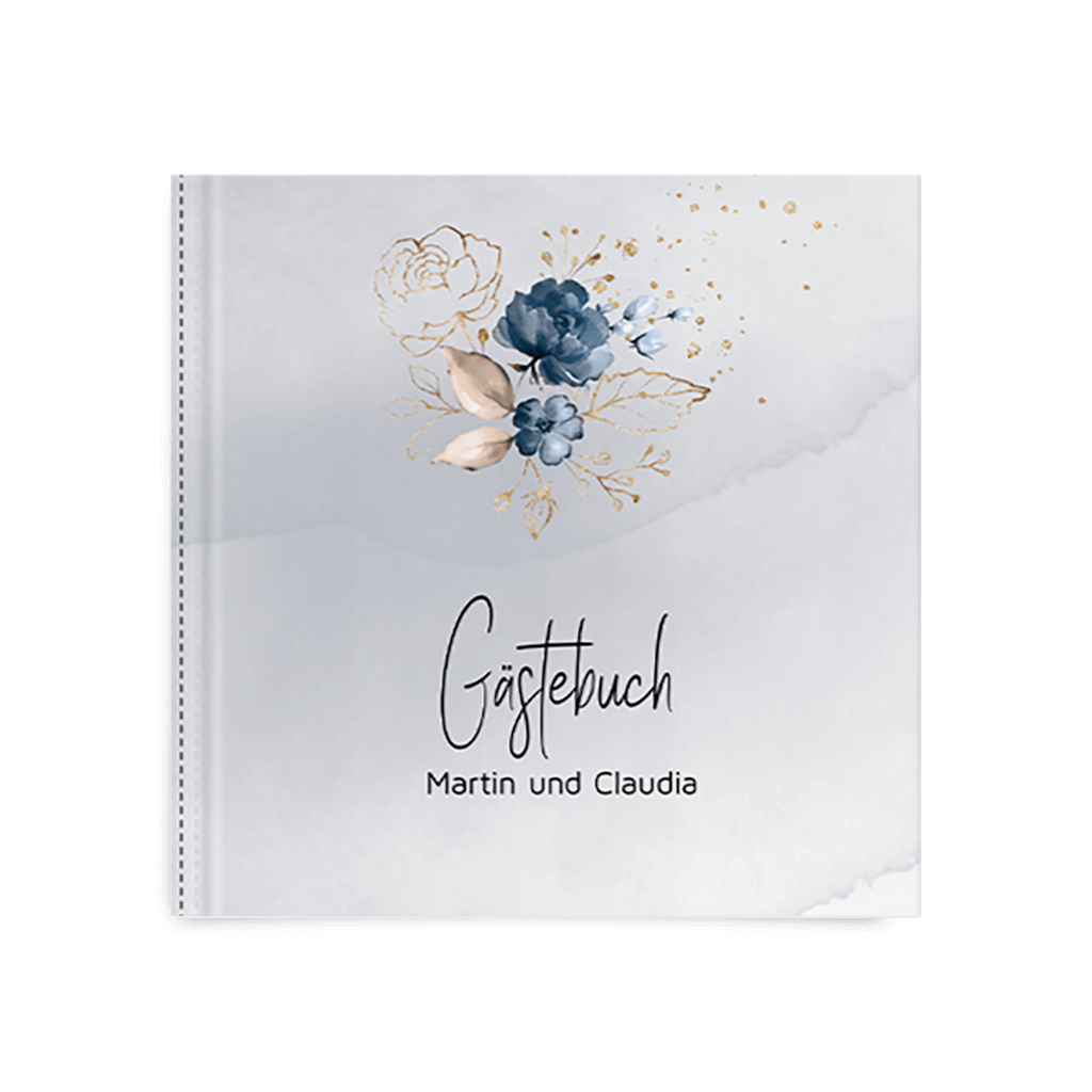 Stilvolles Gästebuch zum Jubiläum mit Aquarell und Blumen