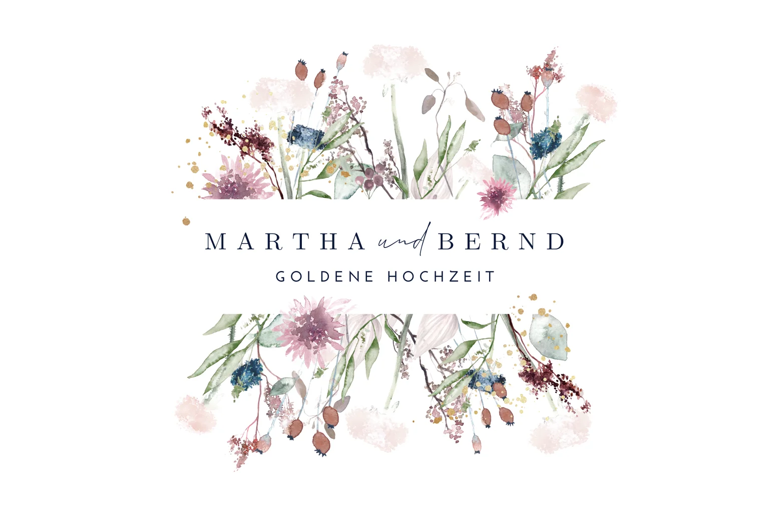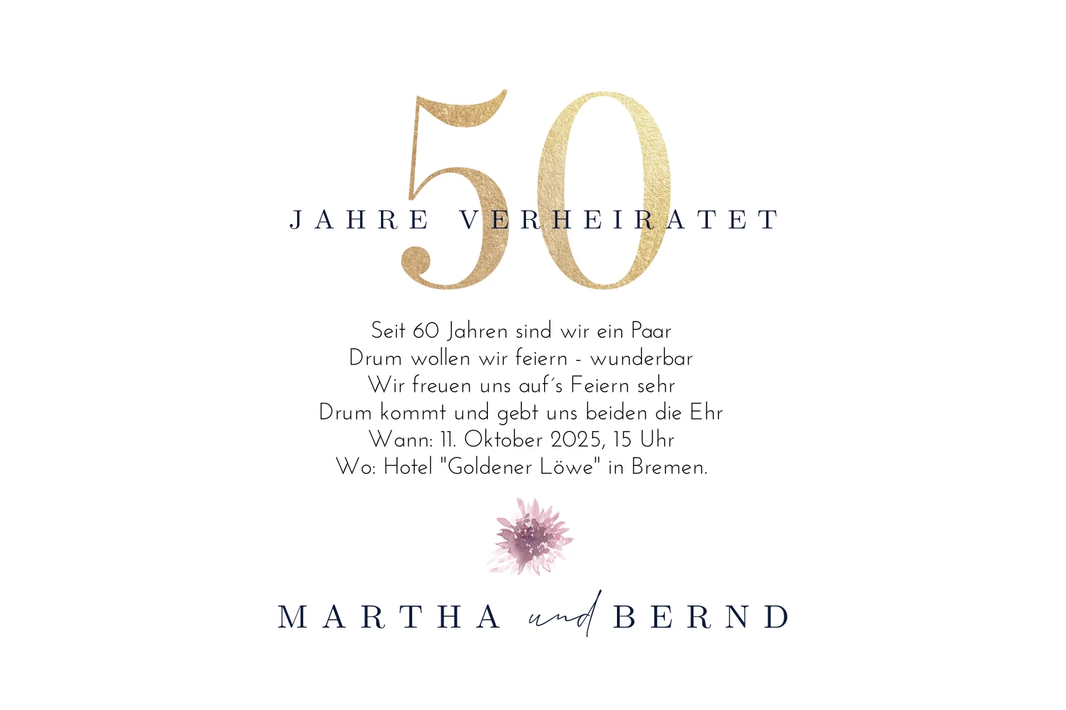 Einladung zur goldenen Hochzeit mit Blumendeko