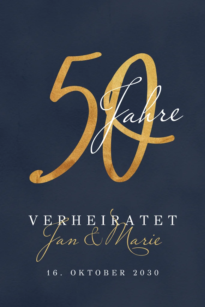 Einladung zur goldenen Hochzeit in Dunkelblau und Gold mit Foto