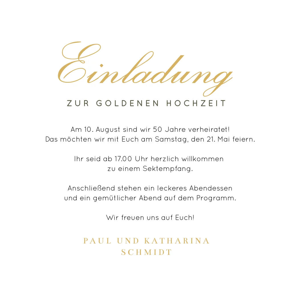 Einladung zur Goldenen Hochzeit mit eigenen Fotos und Mattgoldfolie