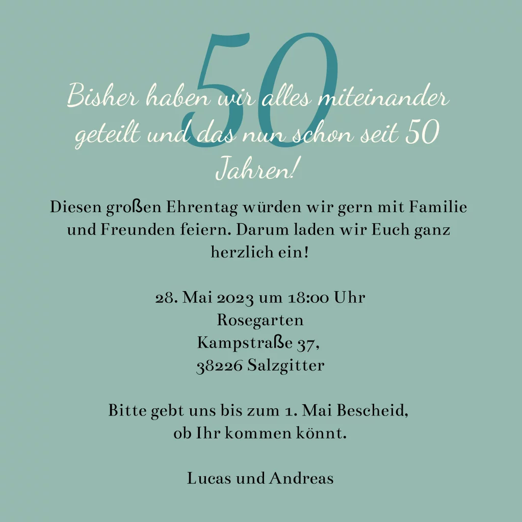 Einladung zur Goldhochzeit mit diversen Details