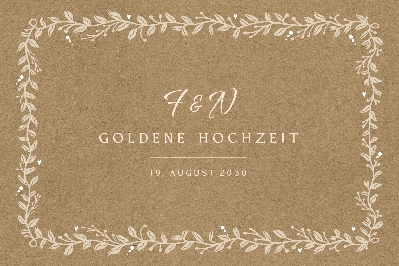 Einladung zur goldenen Hochzeit in Kraft-Look mit dekorativem Rahmen