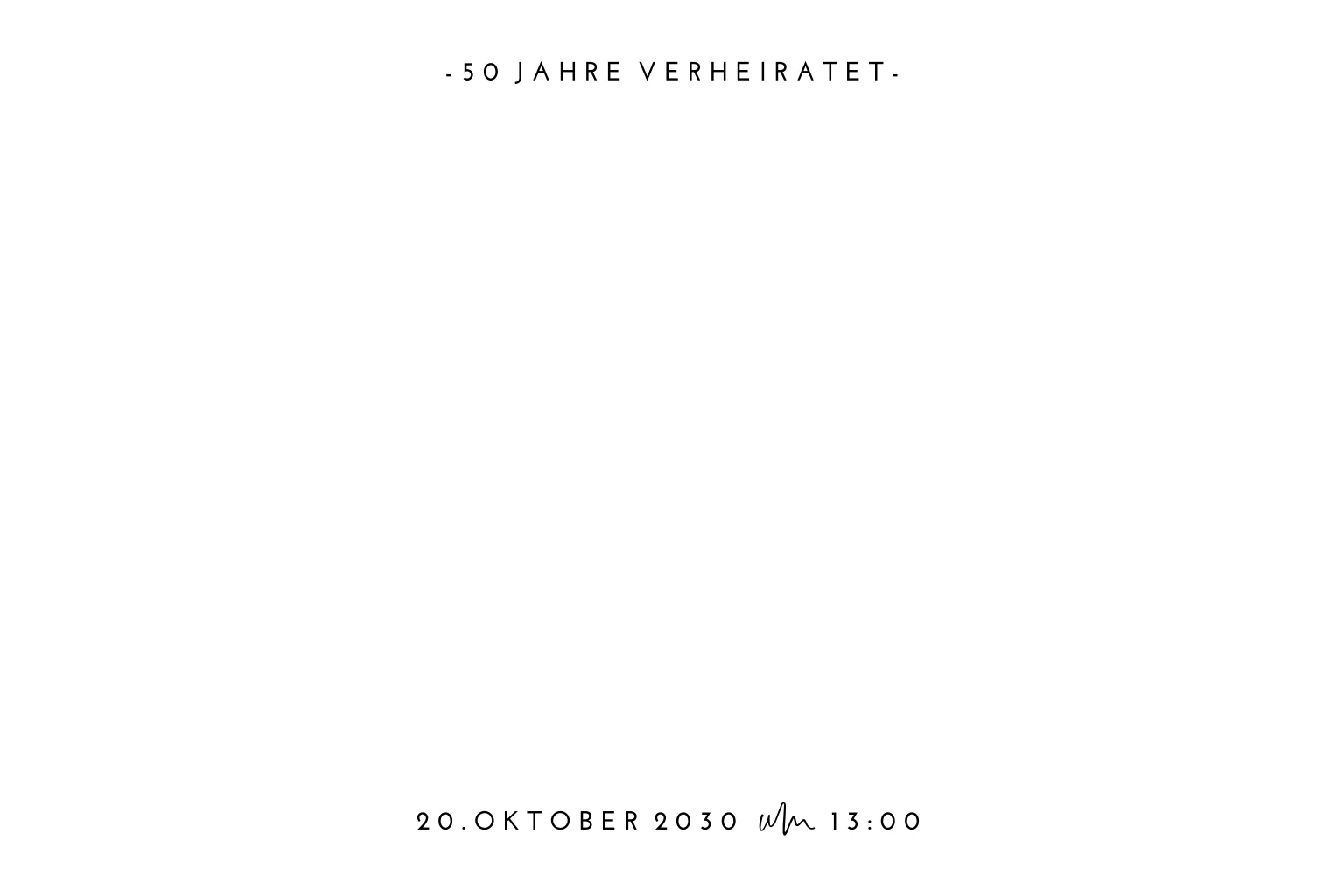 Minimalistische Einladung zur goldenen Hochzeit mit Ringen und Goldfolie.