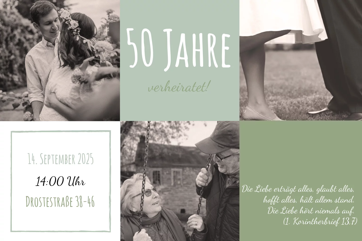 Einladung zur Goldhochzeit mit Platz für diverse Fotos