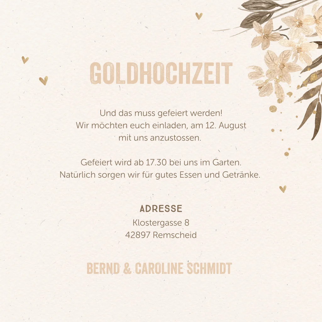 Einladungskarte zum goldenen Hochzeit mit Wegweiser und Blumen