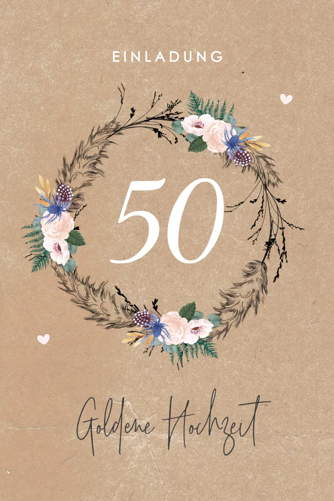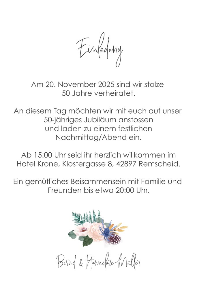 Florale Einladung zur goldenen Hochzeit im Kraftlook
