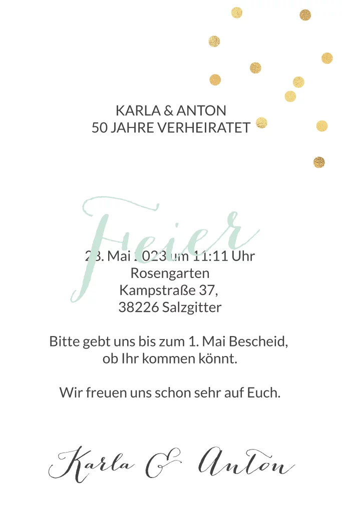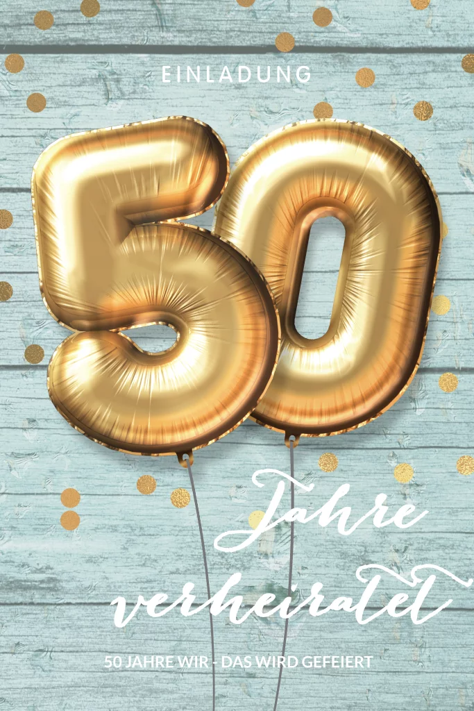 Einladung um 50. Hochzeitstag mit goldenen 50-Ballons
