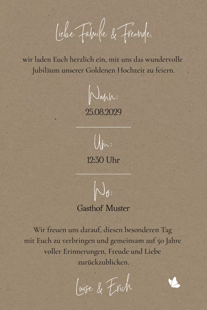 Klappkarte zur Goldenen Hochzeit mit Foto und Schmetterlingen