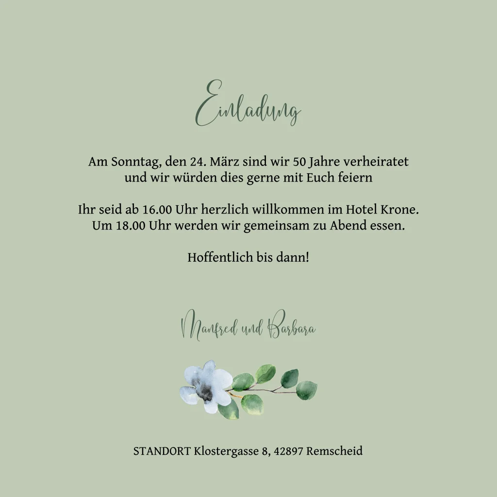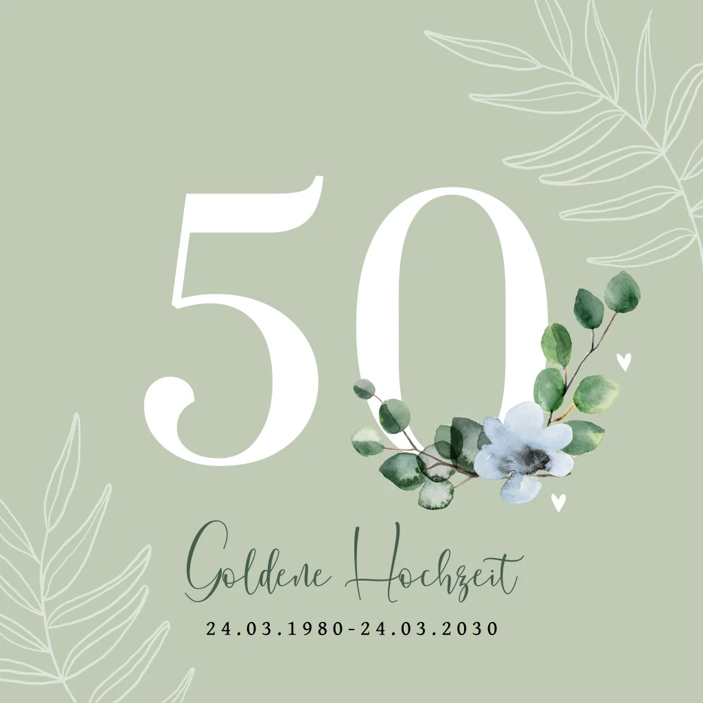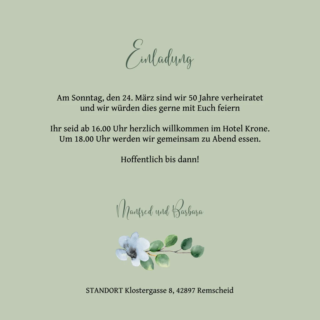 Minzgrüne Einladung zur goldenen Hochzeit mit schicken Aquarellzweigen