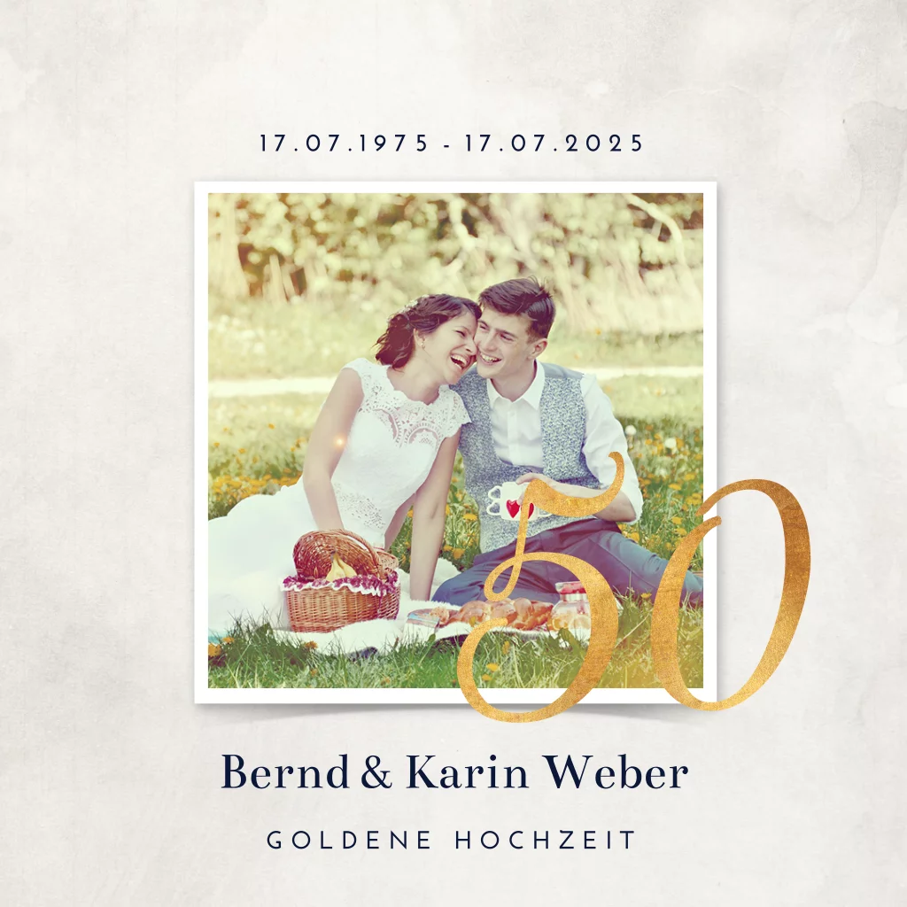 Schicke Einladung zur Goldenen Hochzeit mit Foto