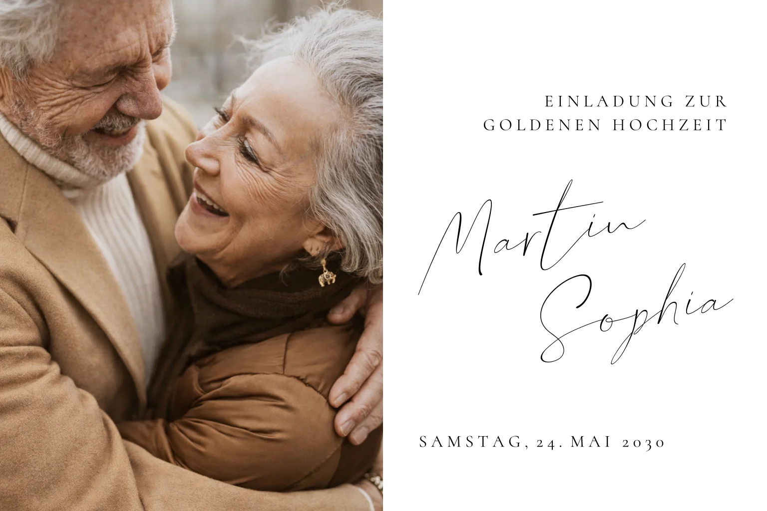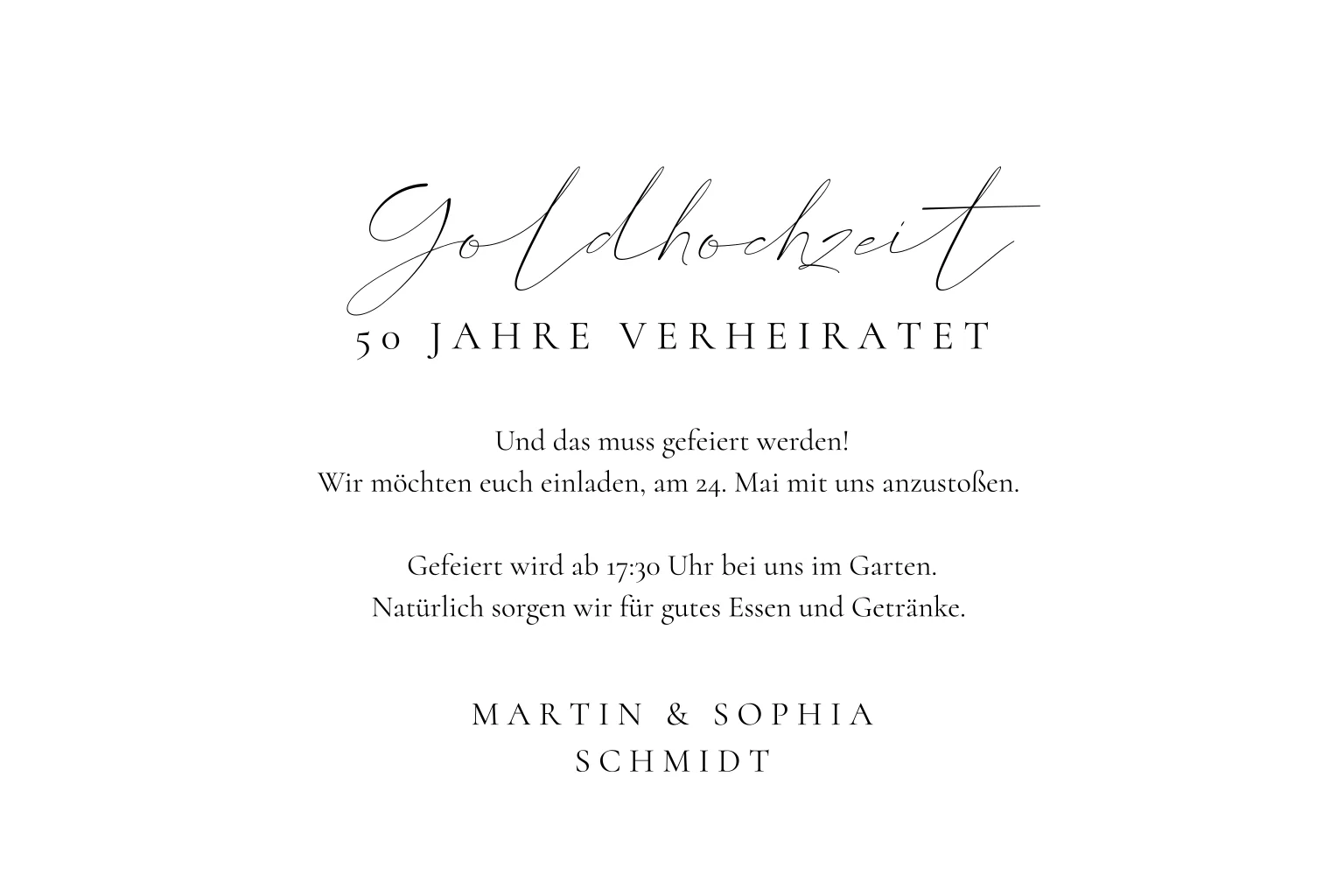 Schlichte Einladung zur Goldenen Hochzeit mit Foto