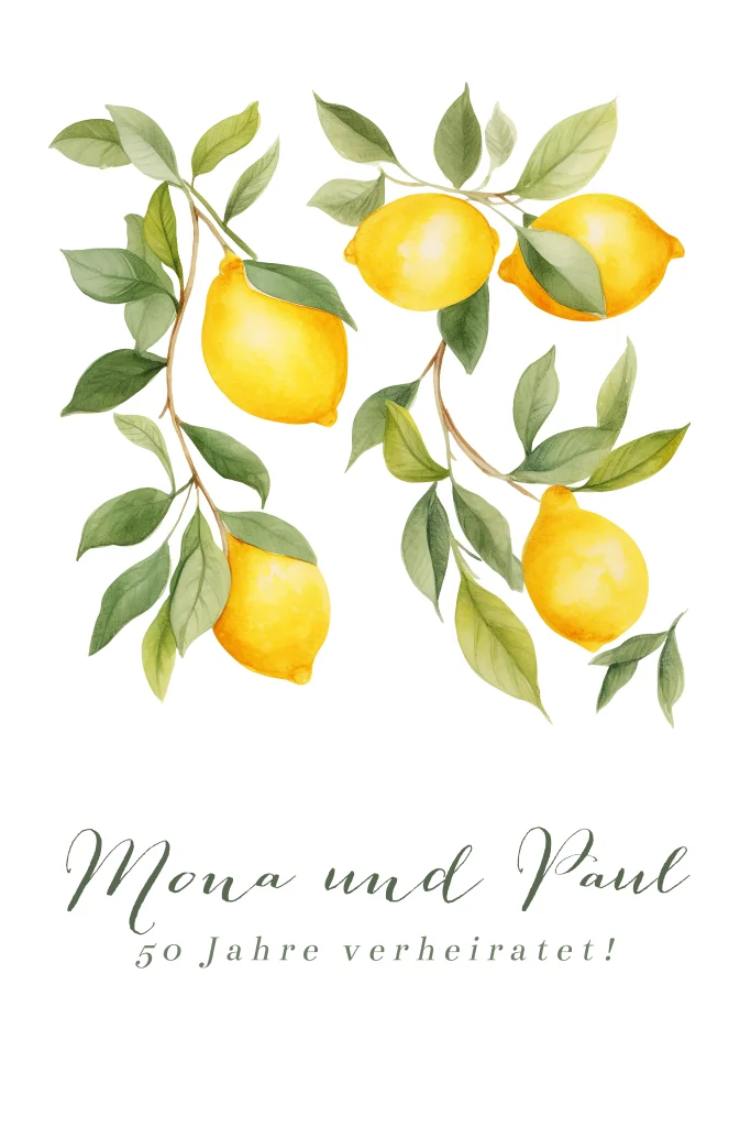 Sommerliche Einladung zur Goldenen Hochzeit mit Zitronen