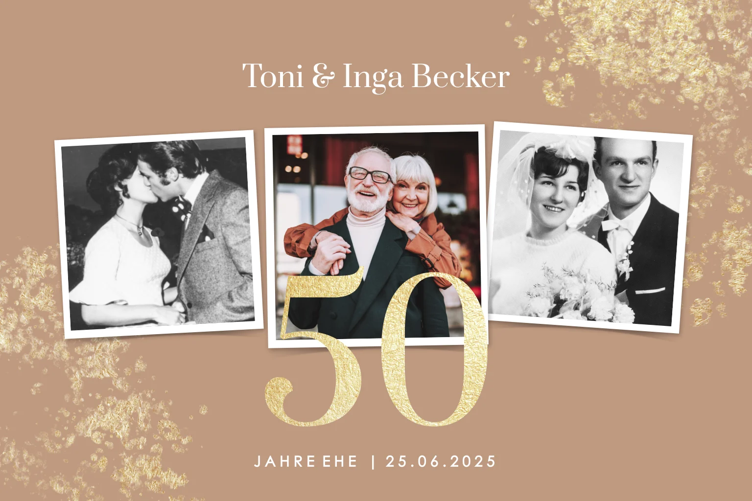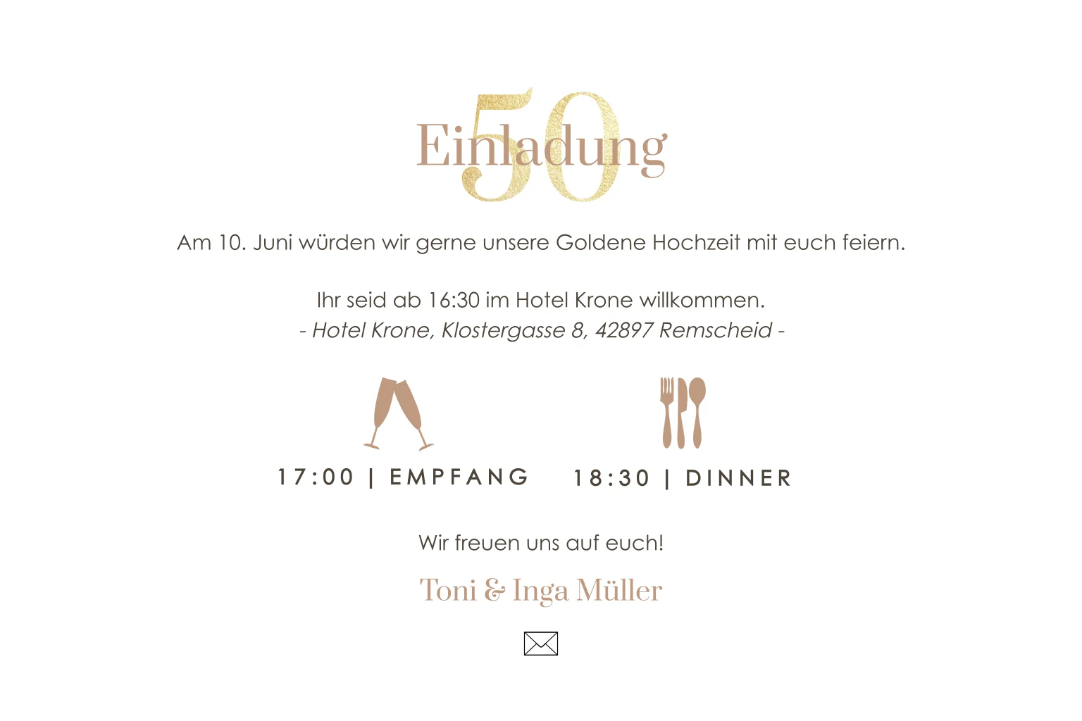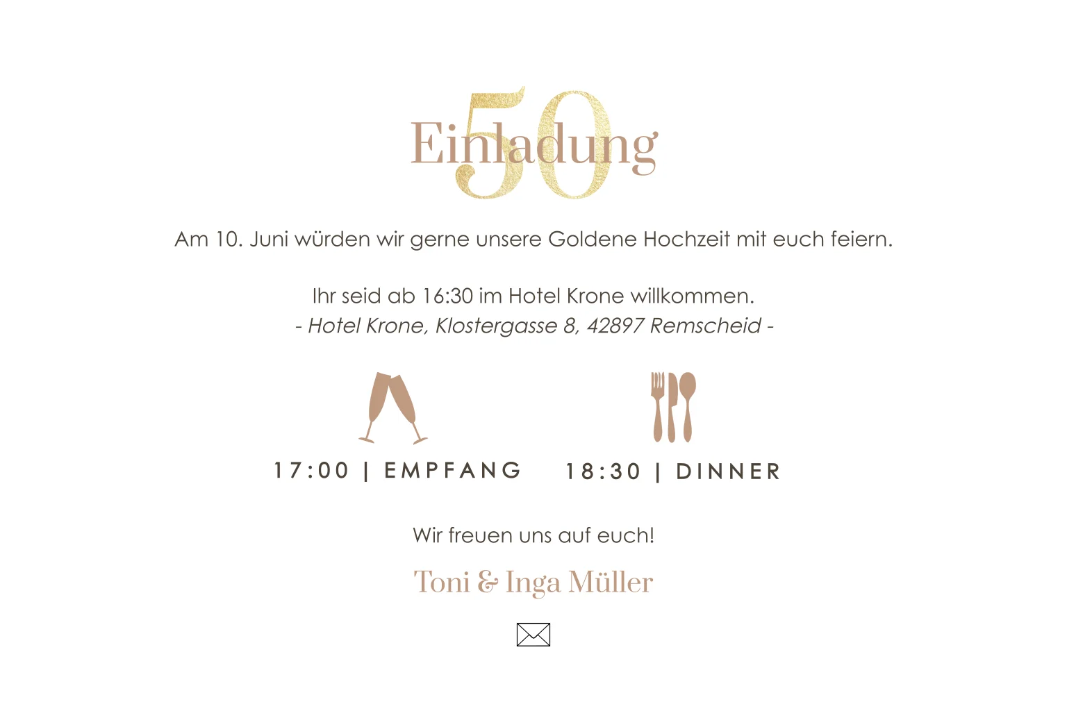 Stilvolle Einladung zur Goldenen Hochzeit mit Bildern und Goldener 50