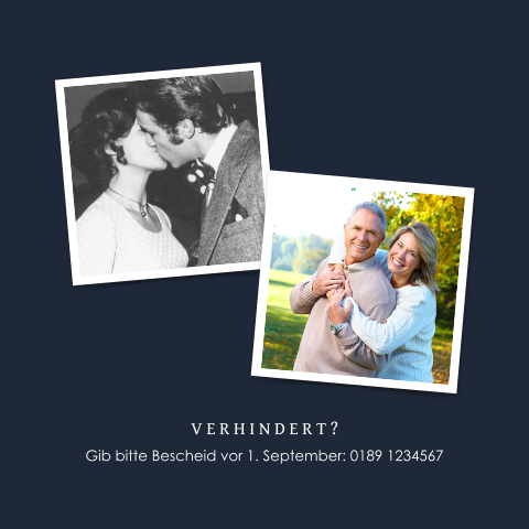 Tolle tiefblaue Einladung zur goldenen Hochzeit mit Fotos.