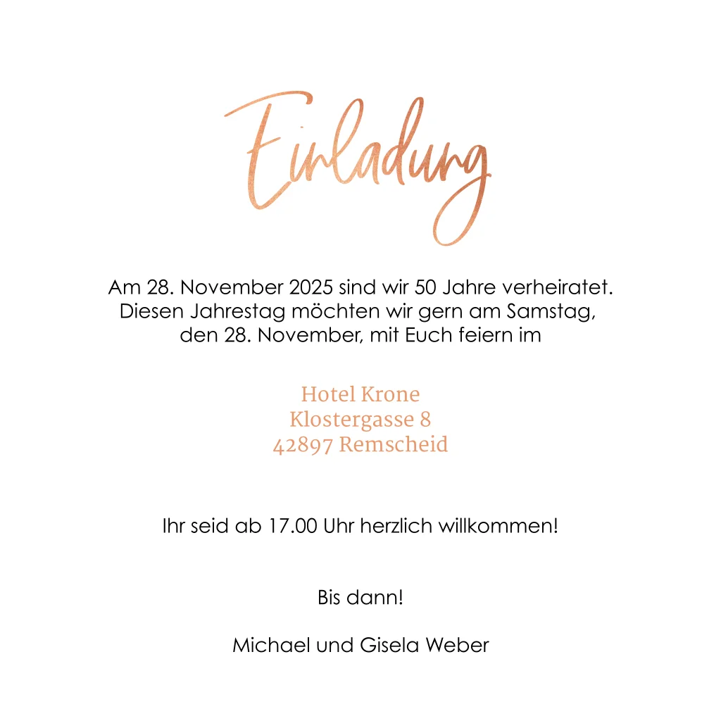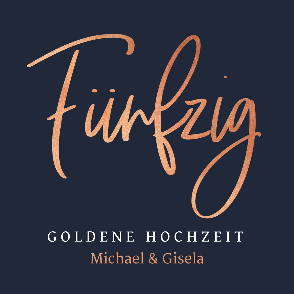 Stilvolle Einladung zur goldenen Hochzeit in Tiefblau mit Fotos