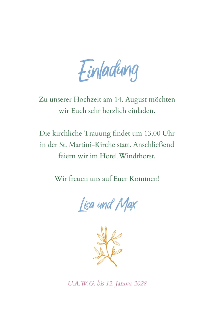 Sieh dir hier all unsere Hochzeitseinladungen im handgezeichneten Stil an.
