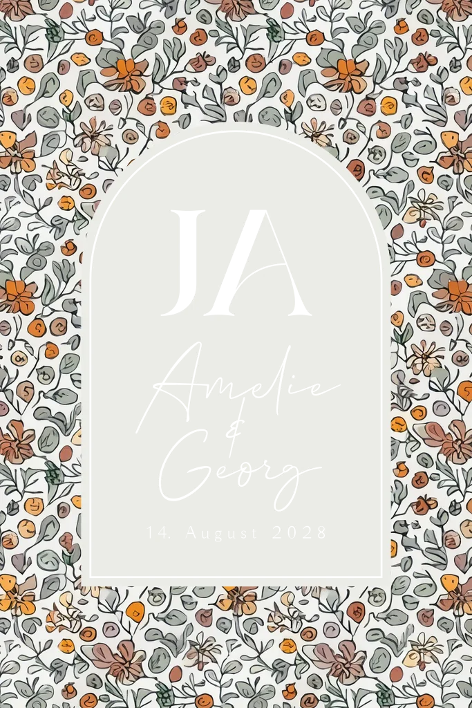 Hochzeitseinladung mit klassischem Blumenmuster und kursive Schrift mit Goldfolie. Dieses Design ist perfekt für Paare, die nach einer eleganten und romantischen Einladung suchen.
