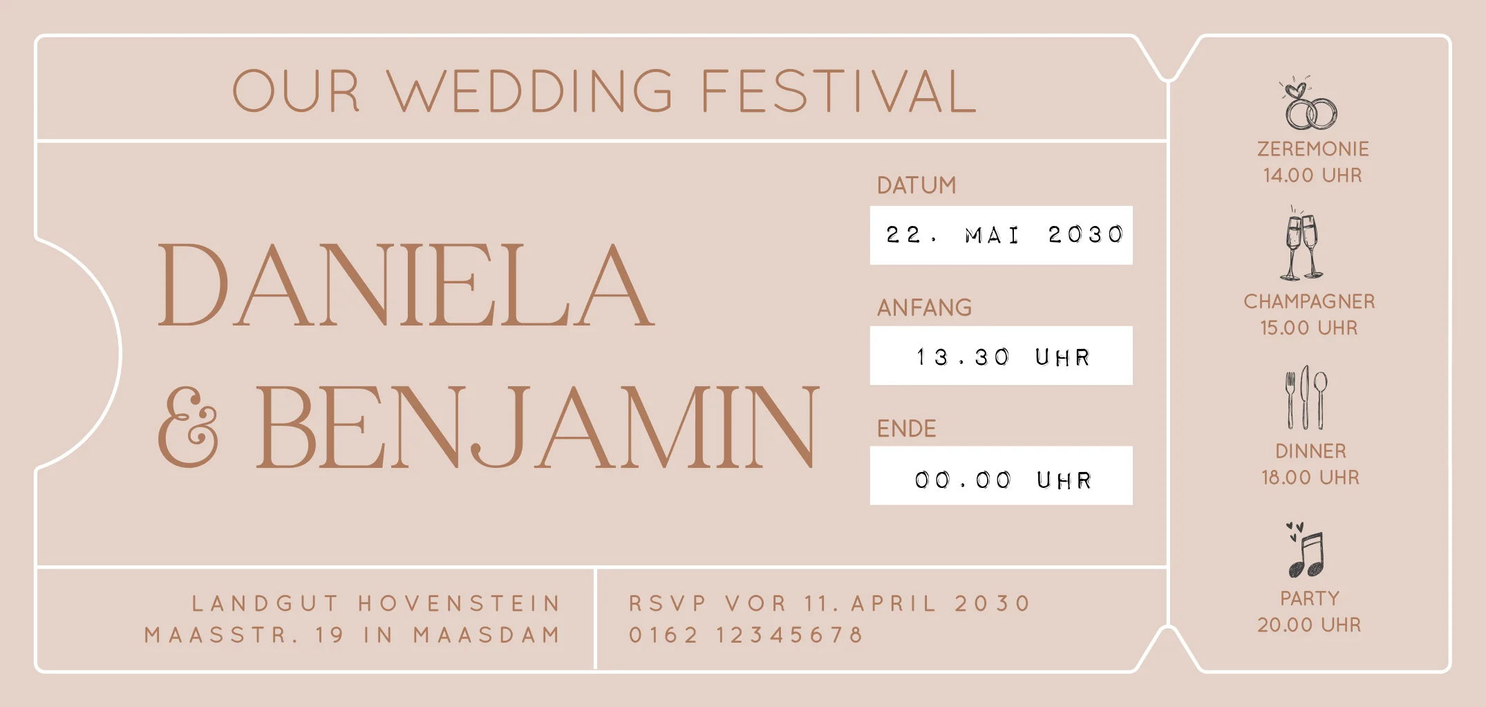 Hochzeitseinladung Eintrittskarte Wedding-Festival