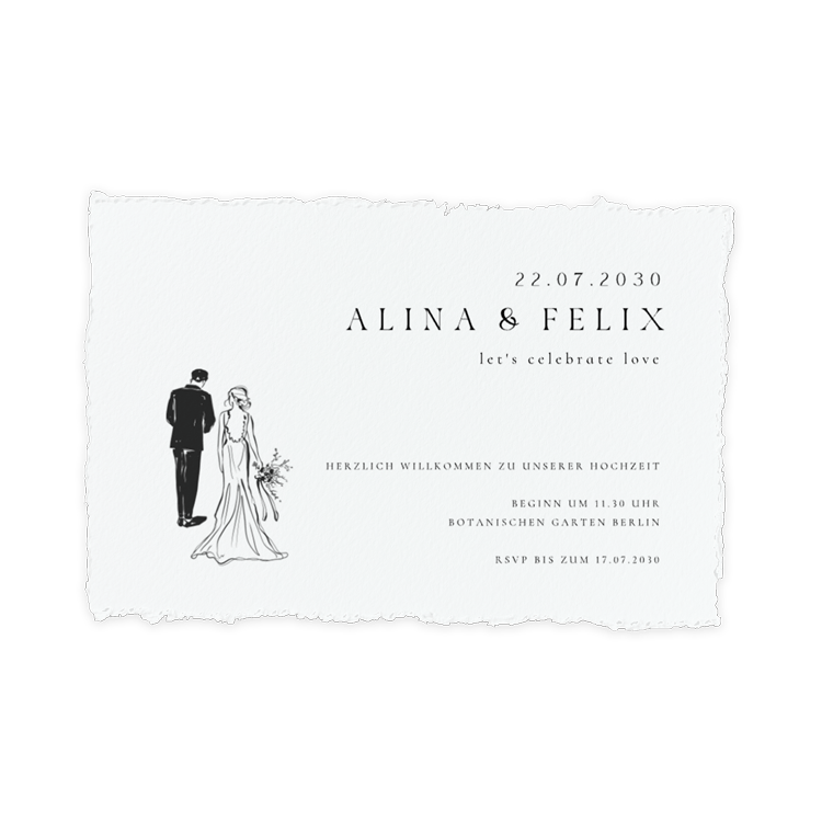 Hochzeitseinladung mit Illustration und Büttenpapier-Look (*DIY).