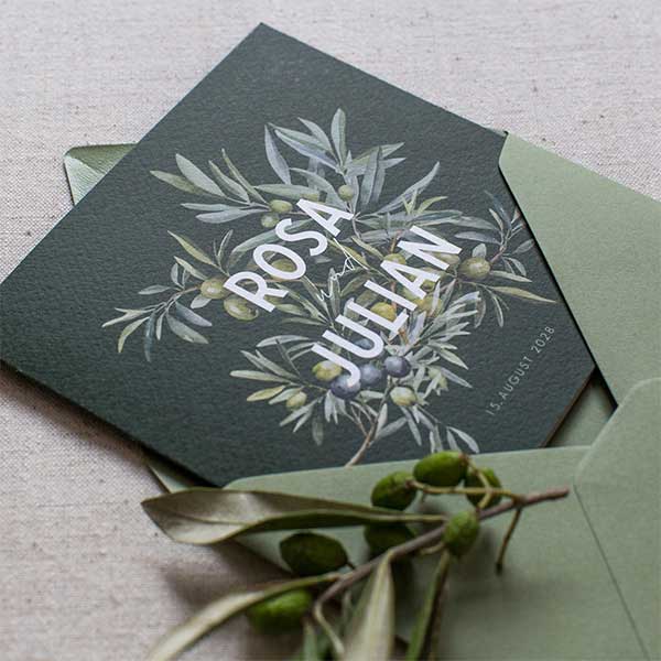 Dieses Produkt ist Teil des Hochzeitskarten-Sets Oliva Verde