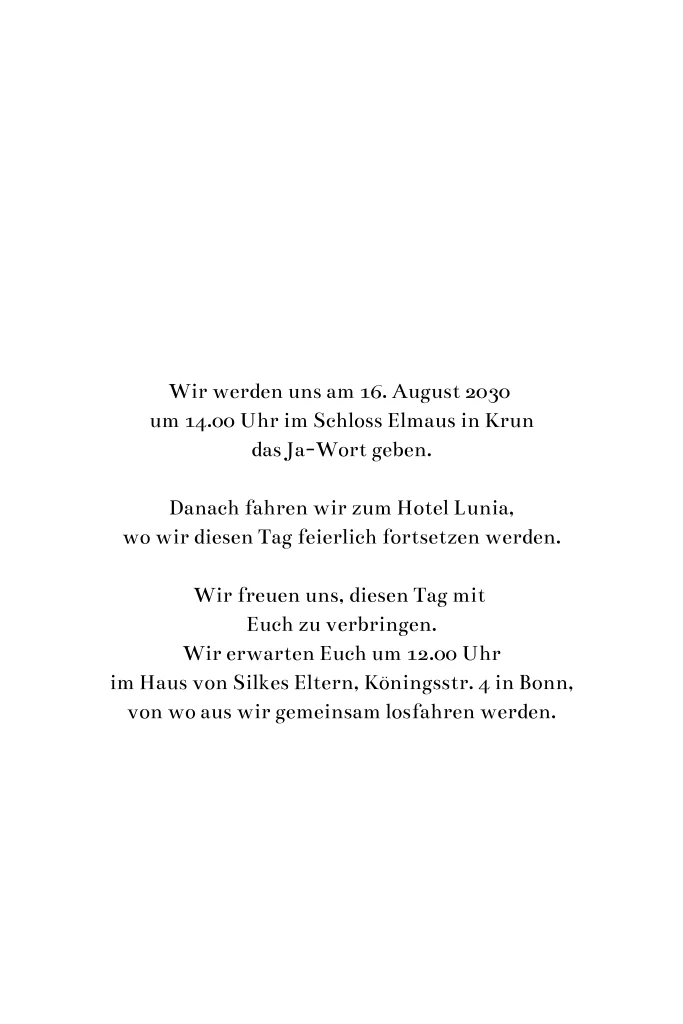Das Design der von dir gewählten Karte wurde automatisch in andere Formate umgestellt. Wähle einfach deinen Wunschformat aus und platziere alle Texte und Elemente an der richtigen Stelle im Editor. Du hast Fragen oder dein Favorit steht nicht zur Auswahl? Dann kontaktiere uns bitte und wir werden uns gemeinsam darum kümmern!