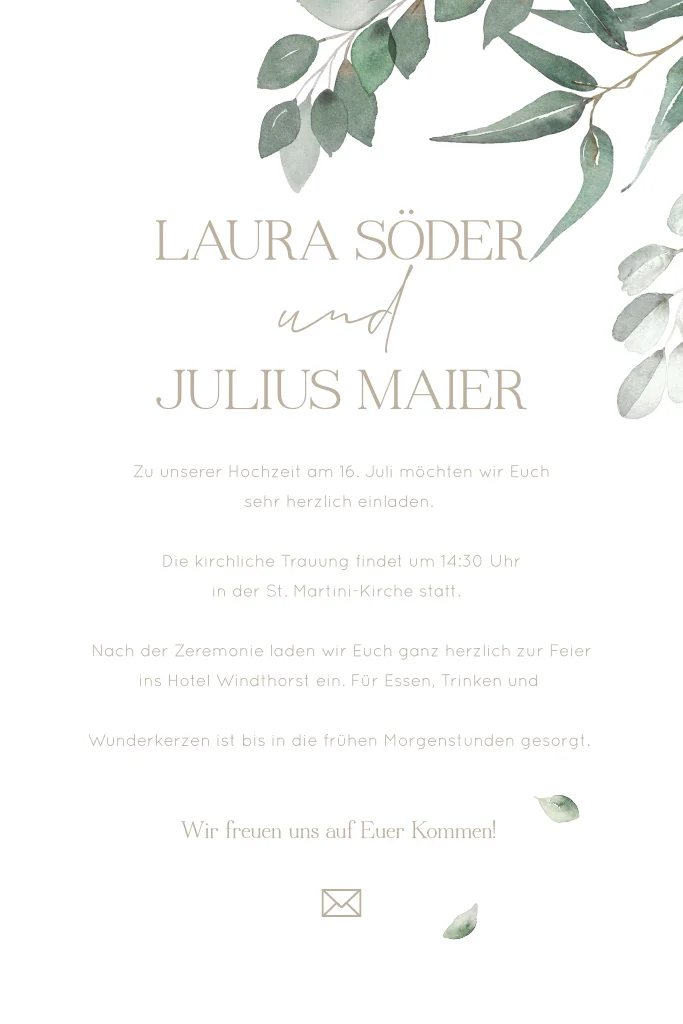 Das Design der von dir gewählten Karte wurde automatisch in andere Formate umgestellt. Wähle einfach deinen Wunschformat aus und platziere alle Texte und Elemente an der richtigen Stelle im Editor. Du hast Fragen oder dein Favorit steht nicht zur Auswahl? Dann kontaktiere uns bitte und wir werden uns gemeinsam darum kümmern!