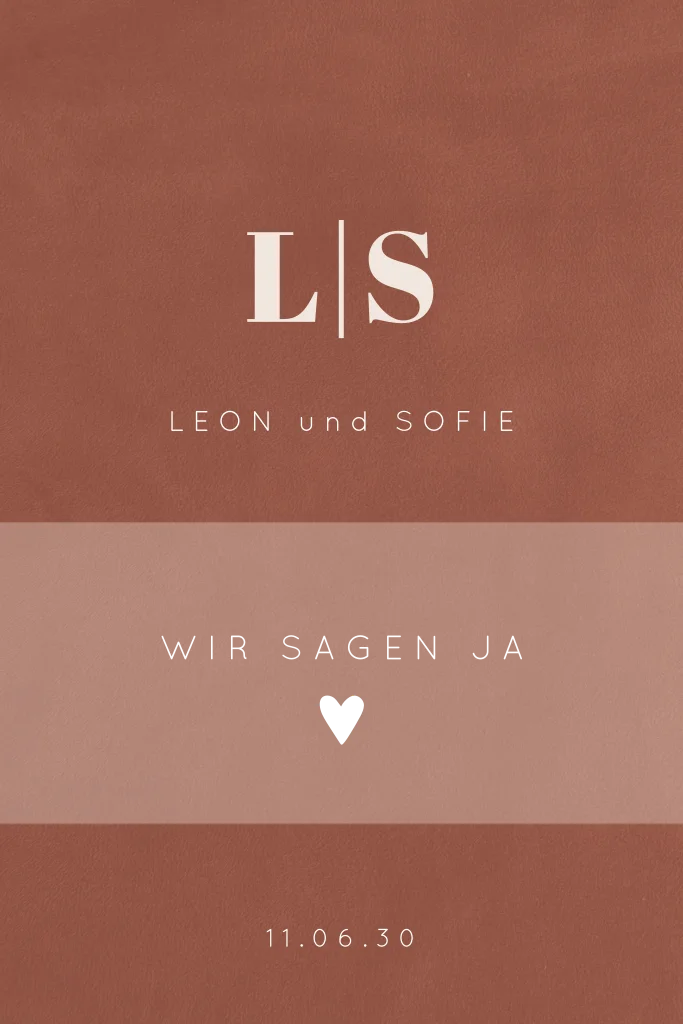 Neben den Tischkarten sind Menükarten der wichtigste Teil der Hochzeitspapeterie für die Feierlichkeiten nach der Trauung. Auf elegantem braunen "Samt" stechen eure Initialen hervor, ein kleines Herzchen symbolisiert eure Liebe.Das Design der von dir gewählten Karte wurde automatisch in andere Formate umgestellt. Wähle einfach deinen Wunschformat aus und platziere alle Texte und Elemente an der richtigen Stelle im Editor. Du hast Fragen oder dein Favorit steht nicht zur Auswahl? Dann kontaktiere uns bitte und wir werden uns gemeinsam darum kümmern!