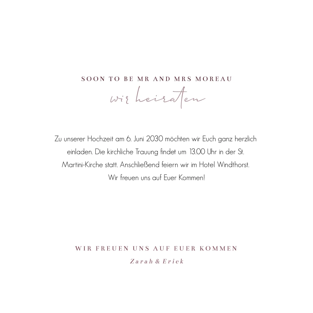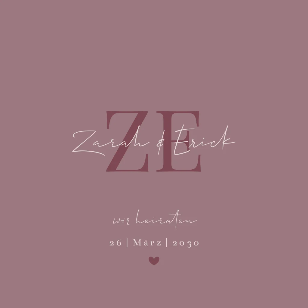 Rosane Hochzeitseinladung mit großen Initialen. Dieses Design ist perfekt für Paare, die nach einer stilvollen und farbenfrohen Einladung suchen.Bei quadratische Karten fällt ggf. ein anderes Briefporto an. Alle Infos findest du auf der Website der Deutschen Post. Zu diesem Format erhältst du Umschläge in der Größe 14 x 12,5 cm. Format ändern ist möglich.
