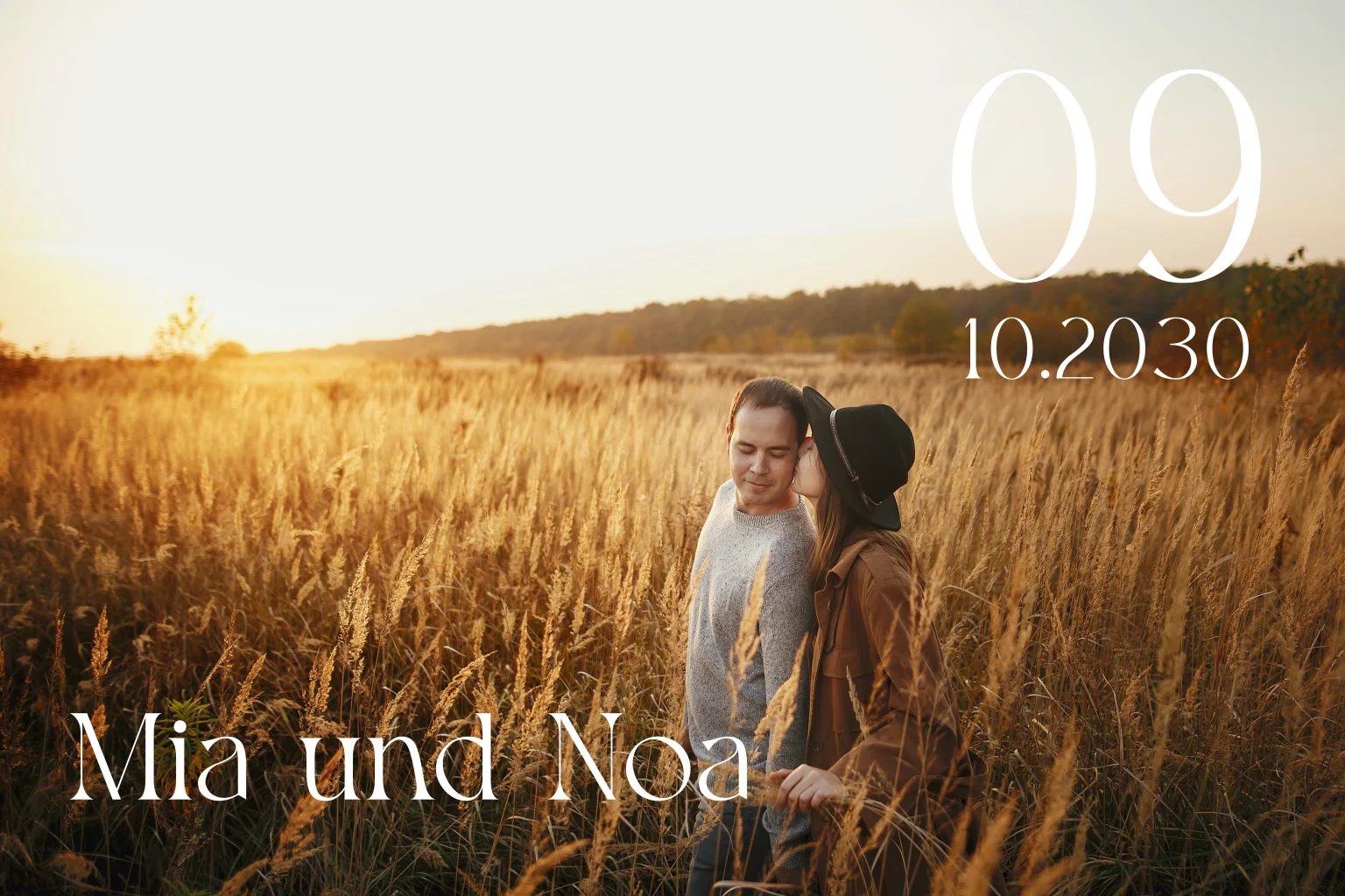 Hochzeitseinladung mit großem Foto und großem Datum. Dieses Design ist perfekt für Paare, die nach einer stilvollen und schlichten Einladung suchen.