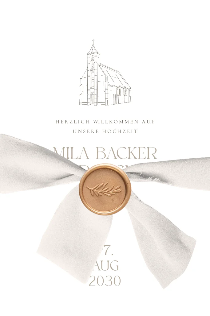 Tipp: Um das Kartenset zu verzieren, kannst du wie im dargestellten Beispiel, Samtband und Lacksiegel benutzen. Siehe auch: Extraprodukte für Hochzeitskarten