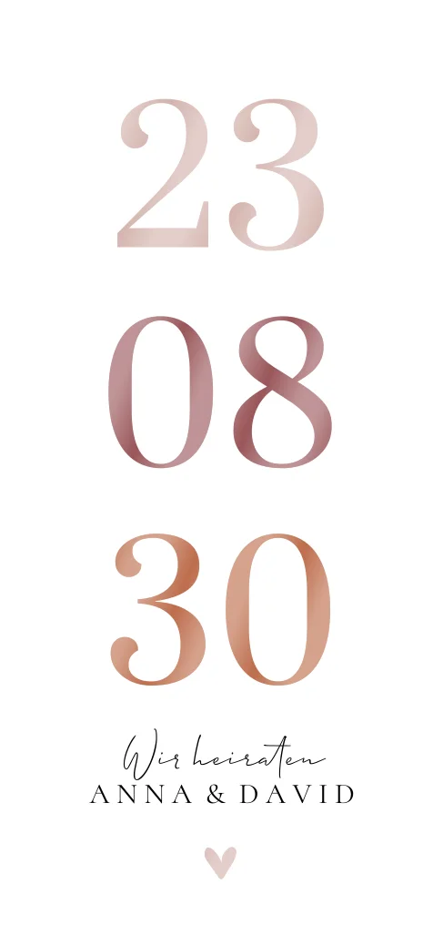 Schlichte Einladungskarte mit bunten Zahlen und Herzchen. Dieses Design ist perfekt für Paare, die nach einer modernen und stilvollen Einladung suchen.