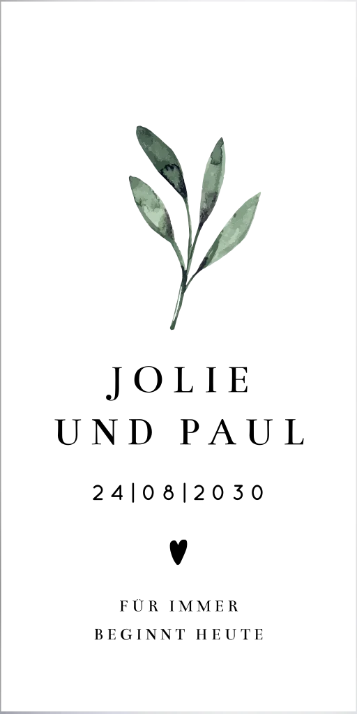 Hochzeitskerze mit Zweigendesign und Typografie – 20 cm hoch, 8 cm Ø