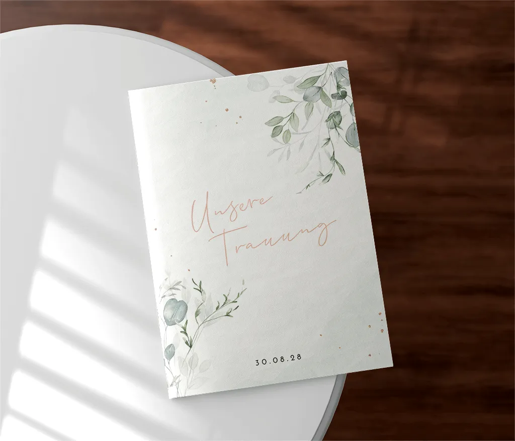 Das Kirchenheft wird durch zwei Heftklammern stabil zusammengehalten und kann sowohl auf Papier mit matter Oberfläche (Holzfreies Papier 170g/m²) als auch auf Papier mit glattem, leicht glänzendem Papier (Seidenglanz 170g/m²) gedruckt werden. Du kannst dabei zwischen einem 4-, 8- oder 12-seitigen Heft wählen.