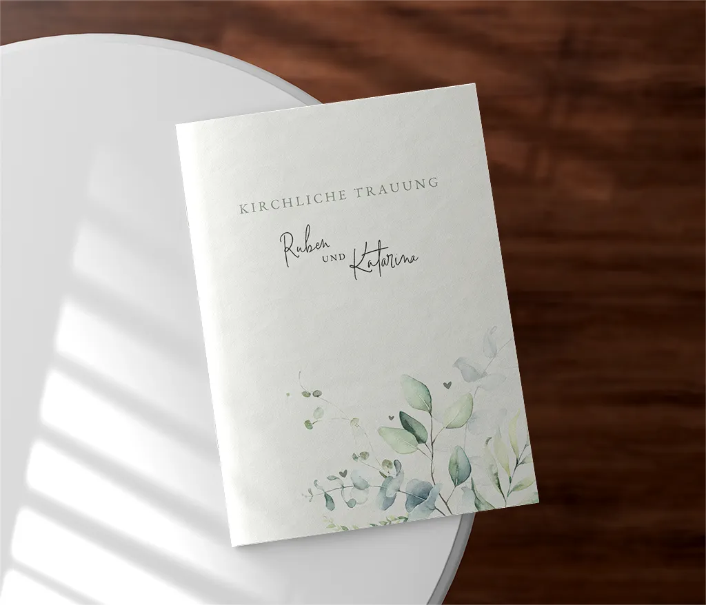 Das Kirchenheft wird durch zwei Heftklammern stabil zusammengehalten und kann sowohl auf Papier mit matter Oberfläche (Holzfreies Papier 170g/m²) als auch auf Papier mit glattem, leicht glänzendem Papier (Seidenglanz 170g/m²) gedruckt werden. Du kannst dabei zwischen einem 4-, 8- oder 12-seitigen Heft wählen.