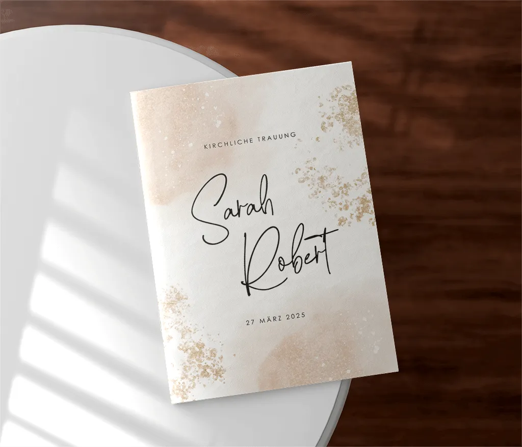 Das Kirchenheft wird durch zwei Heftklammern stabil zusammengehalten und kann sowohl auf Papier mit matter Oberfläche (Holzfreies Papier 170g/m²) als auch auf Papier mit glattem, leicht glänzendem Papier (Seidenglanz 170g/m²) gedruckt werden. Du kannst dabei zwischen einem 4-, 8- oder 12-seitigen Heft wählen.